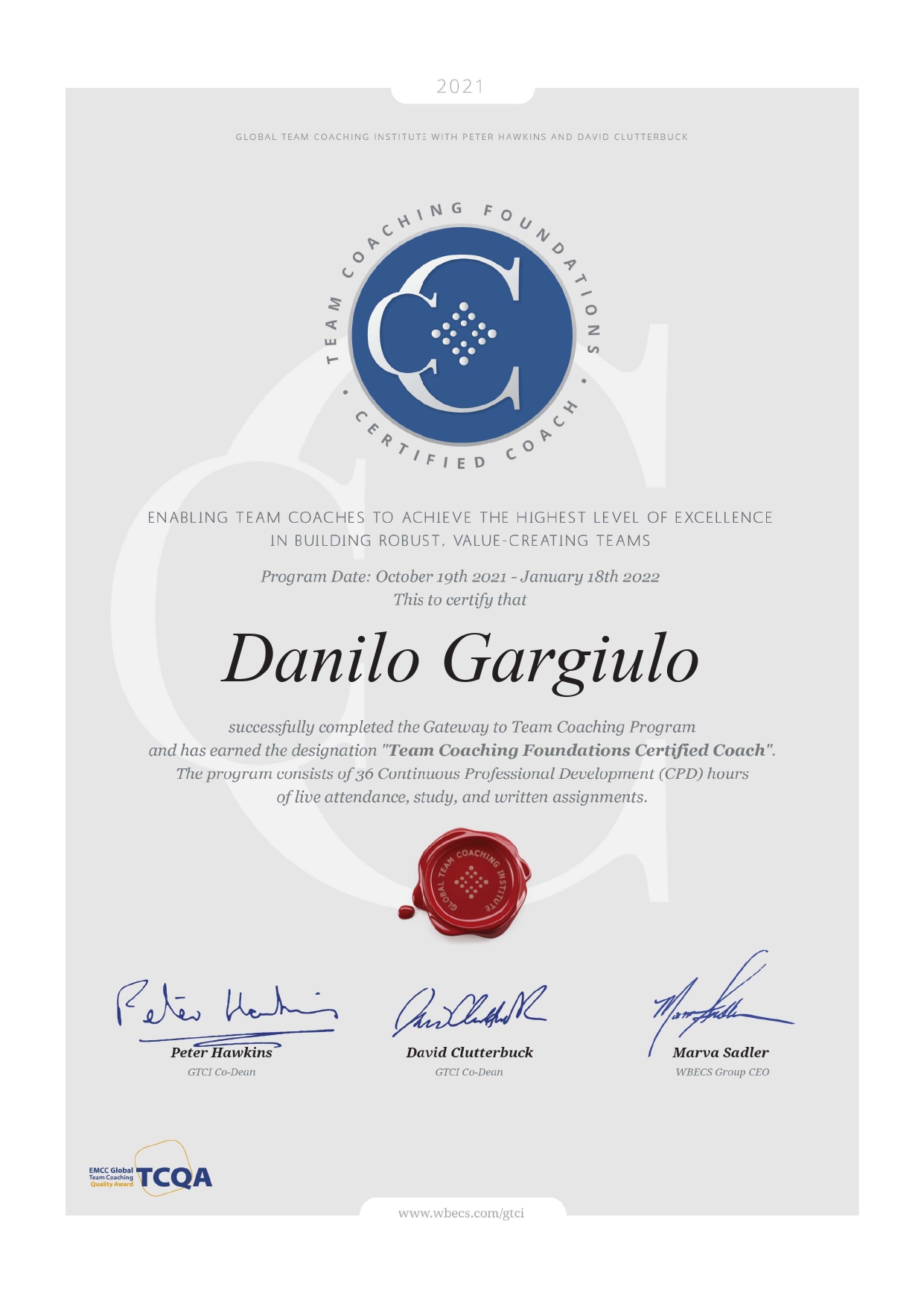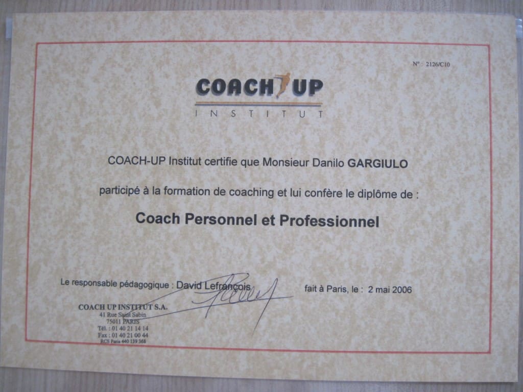 Mi chiamo Danilo Gargiulo, sono nato nel 1974 a Roma e nel 2003 mi sono trasferito in Francia. Sono convinto che il miglioramento costante sia il segreto di ogni successo professionale e personale. A volte la vita ci mette di fronte a delle difficoltà che possono farci dubitare profondamente delle nostre reali capacità e compromettere la nostra vita e quella dei nostri cari. Il coaching è lo strumento per superare le crisi e creare il destino che ognuno di noi merita.