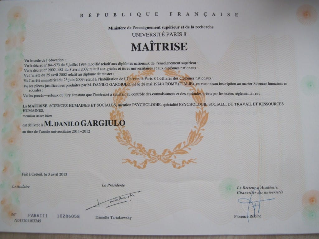 Nel 2006, sono stato certificato coach professionale e personale presso Coach Up Institut, da coach francesi famosi come David Le François e Alain Cardon. Poi tra il 2007 e il 2012, ho ottenuto una laurea in psicologia e un master in psicologia sociale e del lavoro.