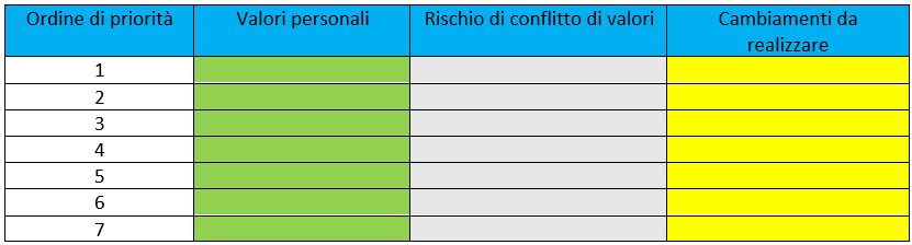 Per prima cosa scrivete i valori che sono più importanti nella vostra vita.